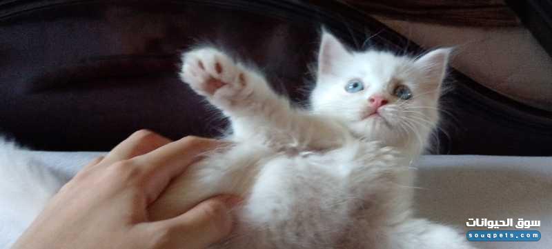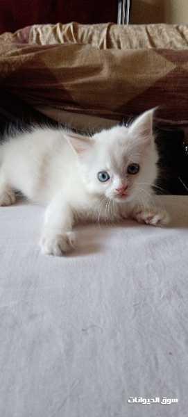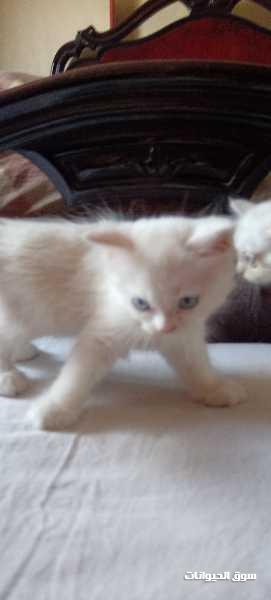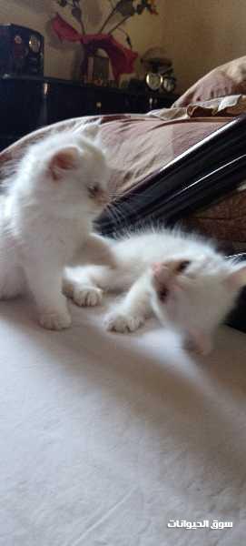 قطتين شيرازي ولد و بنت اللون ابيض العيون زرقاء العمر 45 يوم نظاف و بياكلوا اكل البيت و متعودين علي الرمل مطلوب أسرة ترعاهم و لا للوسطاء